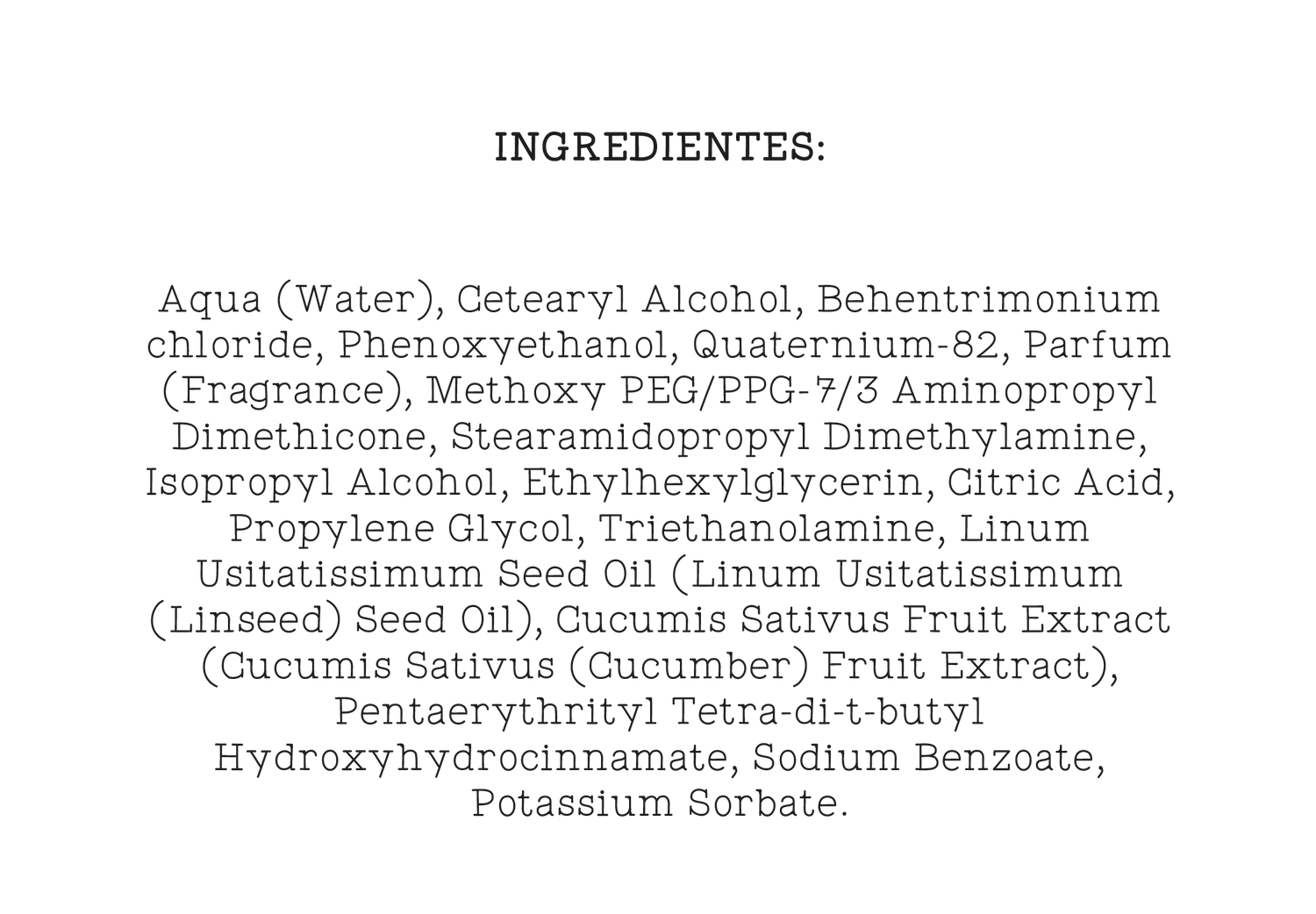 Uso: distribuir un poco de producto sobre el cabello húmedo antes de secarlo, seguidamente peinar y crear el estilo deseado. Con el cabello seco, aplicar una o dos gotas en largos y puntas para hidratar y domar el encrespamiento.
